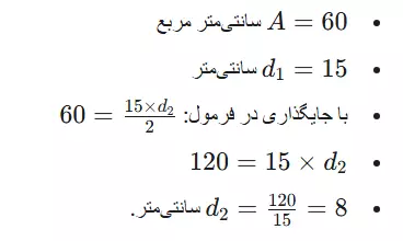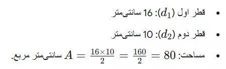 پیدا کردن قطر دوم: از فرمول مساحت استفاده میکنیم: