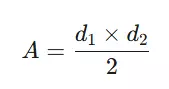 مساحت لوزی برابر است با نصف حاصلضرب طول دو قطر آن.
