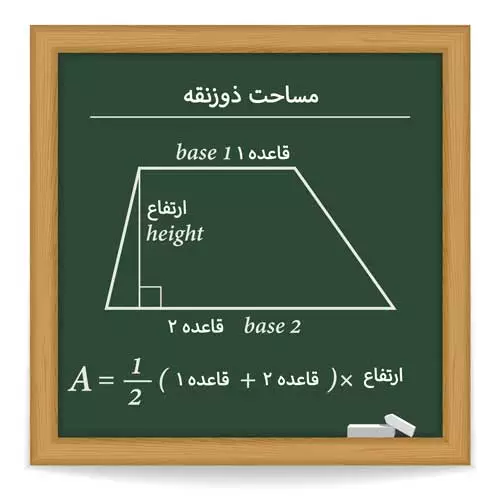 مساحت = (قاعده بزرگ + قاعده کوچک) × ارتفاع ÷ ۲